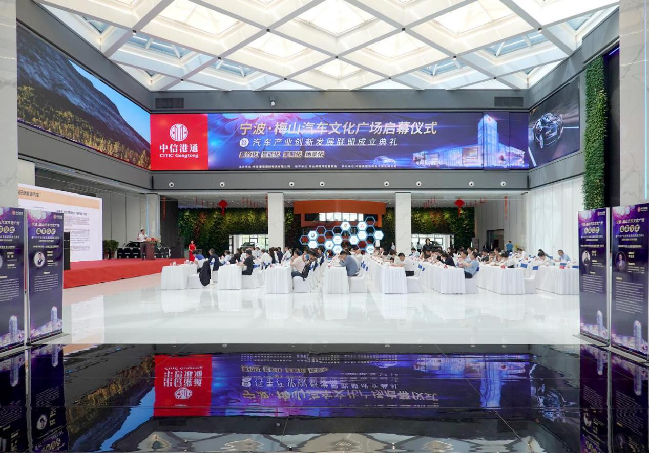 6月3日,中信港通国际物流有限公司在宁波市梅山保税港区举办梅山汽车文化广场启幕仪式暨汽车产业创新发展联盟成立典礼,宁波市副市长李关定、中国物流与采购联合会会长何黎明、中信股份投资总监梁惠江、梅山物流产业集聚区管委会主任张良才、中信兴业集团党委书记、董事长张坚、中信兴业宁波党委书记、董事长刘志勇等领导出席仪式,并为梅山汽车文化广场启幕。